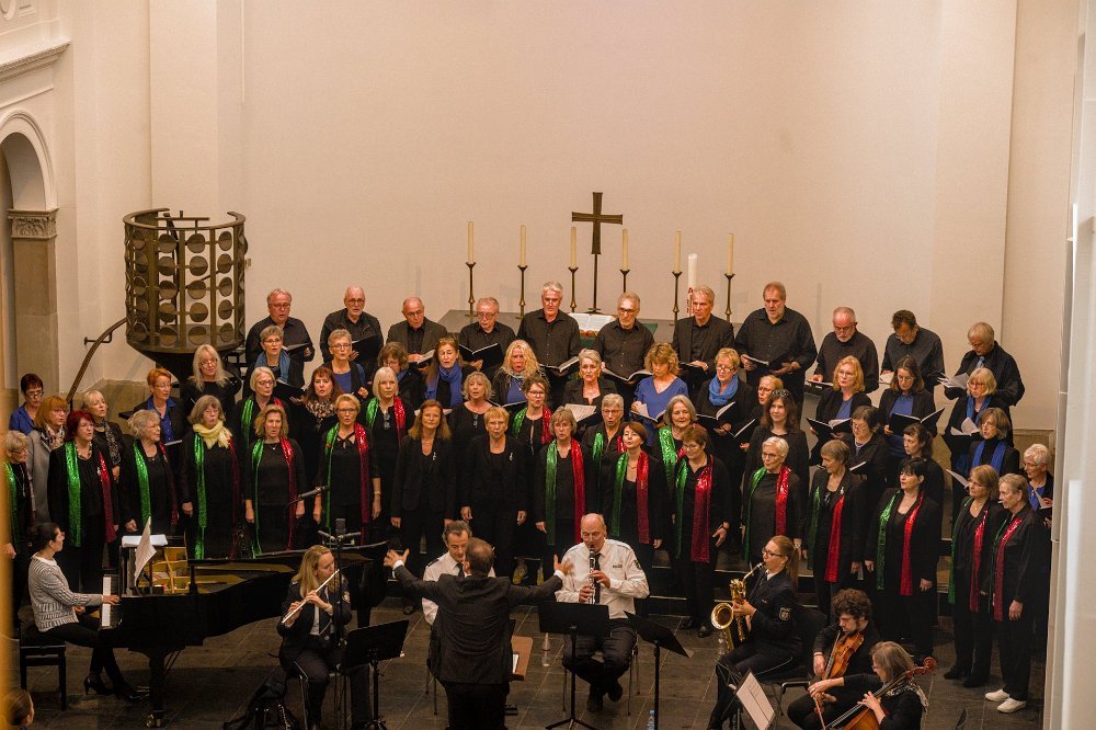 Ein erfolgreiches Benefizkonzert: zusammen mit Polizeipräsident (und Schirmherr) Falk Schnabel kann den Stadtteilmüttern Meschenich eine stattliche Spende…